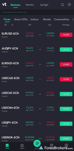 FP Markets provides traders 71 currency pairs (e.g., EUR/USD) compared to VT Markets's 39 available pairs. If you are interested in trading a full range of securities, FP Markets offers traders access to 10000 tradeable symbols, while VT Markets offers access to 1000 tradeable symbols; so FP Markets offers 9000 more tradeable symbols than VT Markets.